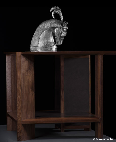 This unique collaboration of fine artisan skills will only be fully realised upon commission. The eventual client will have the opportunity to individualise key pieces, if desired, in likeness of the client’s own favourite horses or equine pursuits. For enquiries or commissions, please contact hanneke@scottsculptures.co.uk